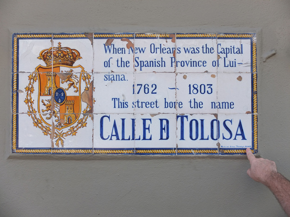 14- Vamos a Louisiana. Nueva Orleans, a finales del s. XVIII, era colonia española. Como testimonio, podemos encontrar estas placas de cerámica de Talavera con los nombres de las calles cuando la ciudad era parte del Imperio.