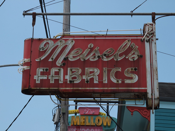17- Rótulo de una tienda de telas en Oak Street. Cerrada.