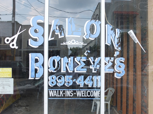 18- Esta peluquería, a pesar de tener un escaparate pintado a mano precioso, tampoco está en su mejor momento.