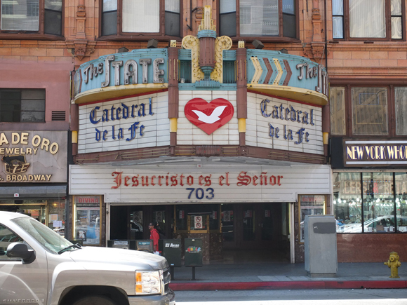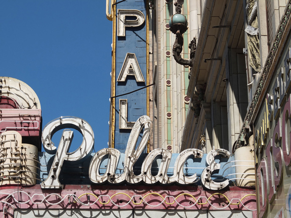 1- Downtown LA, es el centro de negocios de Los Angeles. Tuvo su momento de gloria durante el primer cuarto del s.XX, cuando Broadway, su calle principal, estaba llena de teatros, cines y centros comerciales. Hoy esos edificios se van convirtiendo en otras cosas, pero mantienen los espectaculares rótulos que en su mejor momento fueron luminosos.