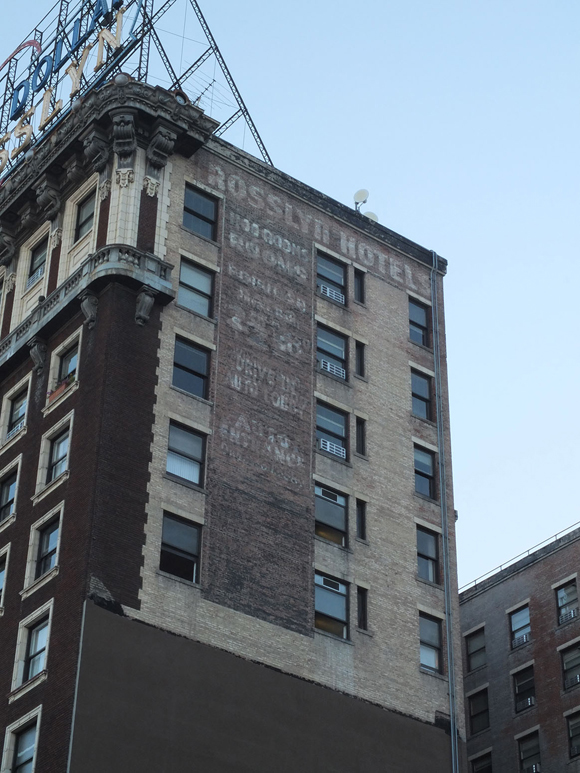 3- Este rótulo fantasma nos explica las comodidades que ofrece el Hotel Rosslyn. Por lo que he leído en yelp, ya no es lo que era.