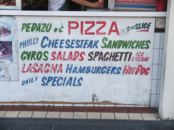 4- Hollywood es cualquier cosa menos glamuroso. Esto es una pizzería de Hollywood Blvd, en medio del Paseo de la Fama.