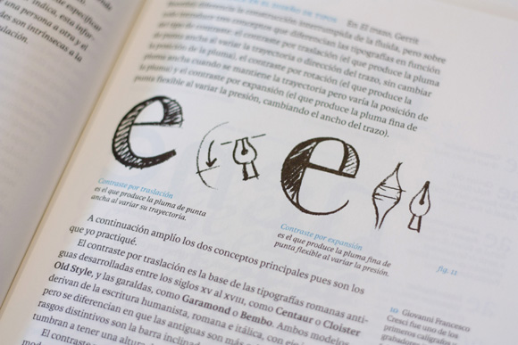 Unos contenidos que parten de la idea del proyecto o motivación que impulsó a sus autores a diseñar tipos, continuan con las definiciones imprescindibles par saber de que estamos hablando, en particular es primordial la distinción entre caligrafía, rotulación y diseño de tipos, y se adentran a continuación en la descripción de las distintas etapas: digitalización, espaciado, programación y que finaliza en una parte menos técnica pero quizás más interesante para todos los que se adentran en este mundo que es la distribución de la tipografía. Todos estos apartados están sumamente bien explicados y se acompañan de multitud de ilustraciones que consiguen que los procesos se asimilen de manera rápida y efectiva.