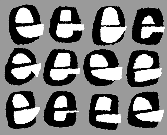 Mientras tanto, esta forma de ver las letras ofrece al estudiante una idea de la manera en la que trabajan los tipos móviles de plomo. Las formas blancas en el interior de la letra y alrededor de ella son esenciales para formar el espacio integrado donde se asienta la letra.