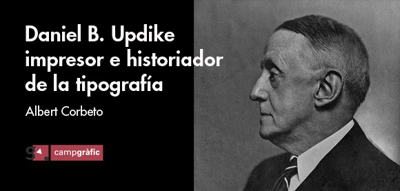 El investigador e historiador de la tipografía Albert Corbeto ha publicado en la Editorial Campgràfic sus dos últimas obras: Daniel B. Updike impresor e historiador de la tipografía y Tipos de imprenta en España. La primera reflexión que se me ocurre es la de que ver el nombre de Updike en la portada de un libro en castellano dice mucho del estado actual e interés creciente de los estudios sobre la historia de la tipografía.