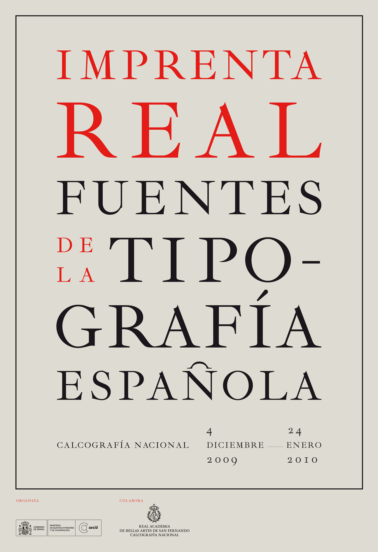 Desde el próximo 4 de diciembre hasta el 24 de enero de 2010, podrá visitarse en la madrileña Sala de Exposiciones de la Calcografía Nacional situada en la Real Academia de Bellas Artes de San Fernando en la calle de Alcalá, la importante exposición Exposición «Imprenta Real, fuentes de la tipografía española» que gira entorno al origen y evolución del diseño tipográfico en España. A continuación os dejamos con la nota de prensa correspondiente donde podreis ampliar la información sobre este importante evento.