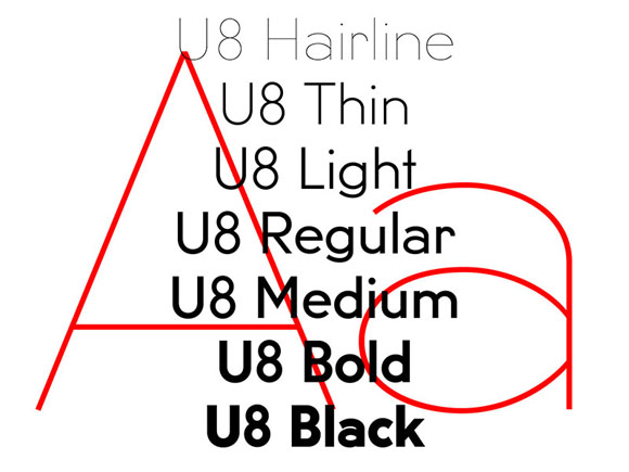 U8 es una tipografía sin remate de tipo geométrico, basada en la señalética del metro de Berlin. Es un diseño de Anton Koovit lanzado en el año 2003.