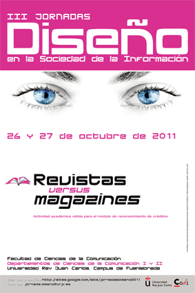Durante los días 26 y 27 de octubre de 2011 se van a celebrar en la Facultad de Ciencias de la Comunicación de la Universidad Rey Juan Carlos las III Jornadas de Diseño en la Sociedad de la Información.