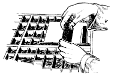 2º. Una vez la composición fuera del componedor, se lleva al galerín, inclinándola hacia delante, para evitar que las letras se caigan.