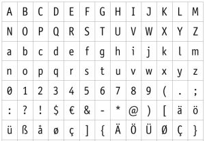 Esta fuente resuelve entre otros, el problema de la creación de tablas o gráficos, donde prima la función de legibilidad sobre la estética. Perfecta para columnas estrechas a tamaños pequeños, gracias también a su caracter monoespaciado, tiene una optima legibilidad en monitor y proyecciones. Ideal para presentaciones y bonita en papel.