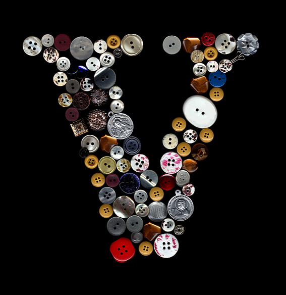Os dejamos la muestra de nuestra participación con la letra «V» creada con algunos botones del costurero que heredamos de de la abuela.